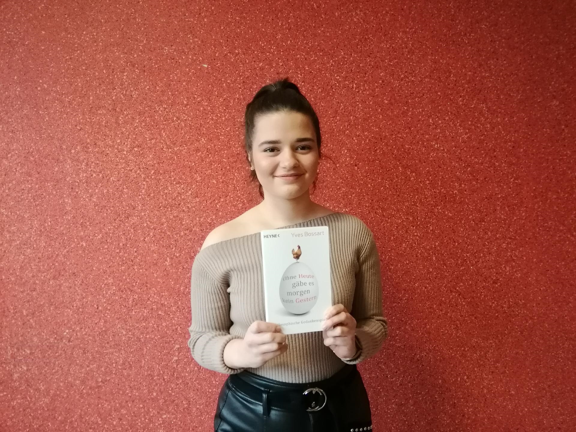 Anastasia Osipova (Q2) schaffte in diesem Jahr das Double: Nachdem sie bereits im letzten Durchgang von der schulinternen Jury zur Schulsiegerin des Bundeswettbewerbs „Philosophischer Essay“ gekürt wurde, konnten in diesem Jahr Anastasias Ausführungen zu der Frage „Ist all unser Handeln egoistisch?“ erneut überzeugen. In Anerkennung ihrer Leistungen wurde ihr als Schulsiegerin ein philosophisches Buchpräsent überreicht.