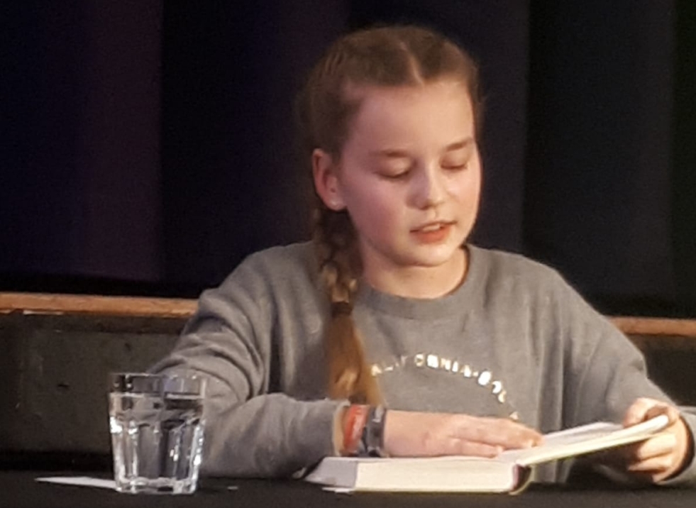 Als Siegerin des Schulentscheids des Graf-Stauffenberg-Gymnasiums nahm Jule Klaas (6d) am 07.02.2019 am Stadtentscheid des Vorlesewettbewerbs im Haus der Jugend teil.