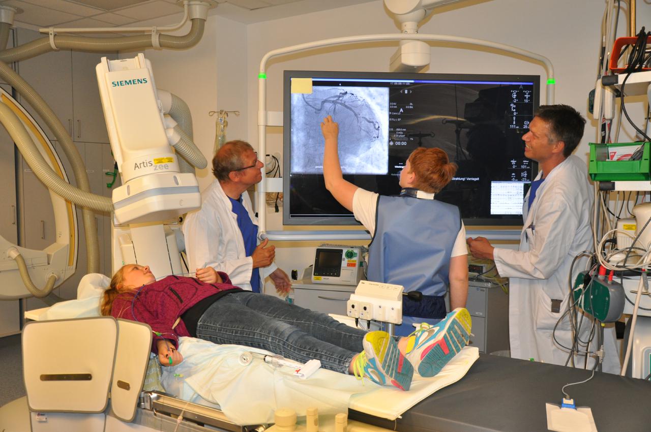 Unser Biologiekurs der Klassen 7a+d verbrachte mit Frau Steinkühler am 8. Juni 2017 den Nachmittag im Marienhospital Osnabrück im Bereich der Kardiologie. Wir wurden dabei von den Oberärzten Dr. Gottkehaskamp, Dr. Amelingmeyer und deren Team empfangen und geführt.
