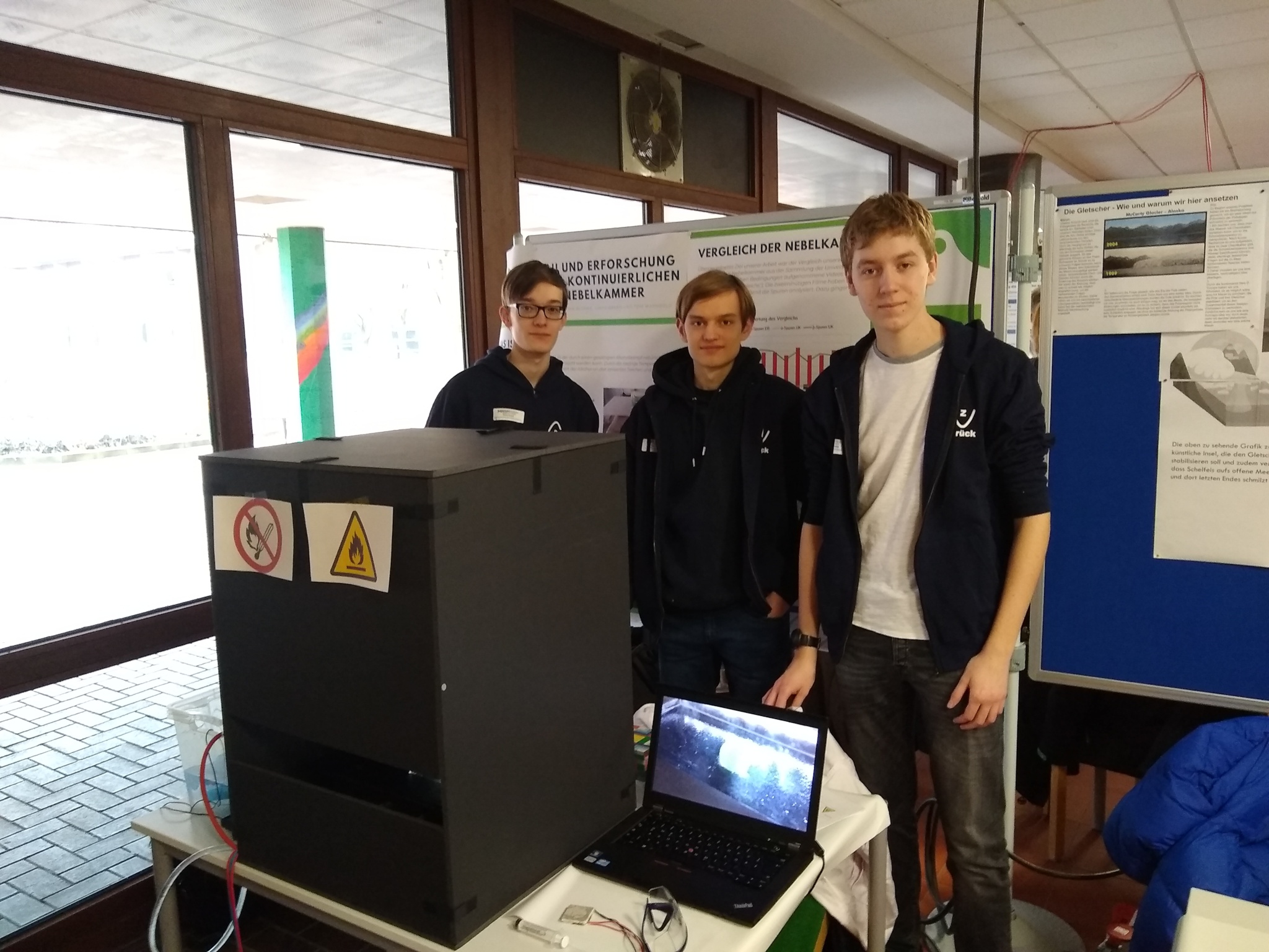 Am 27. und 28.02.2020 waren wir (Maximilian Blümke, Timon Brand und Tom Warmbold (11B)) beim Jugend-forscht-Kreiswettbewerb in Lingen. Dort stellten wir unseren Nebelkammer-Eigenbau vor.