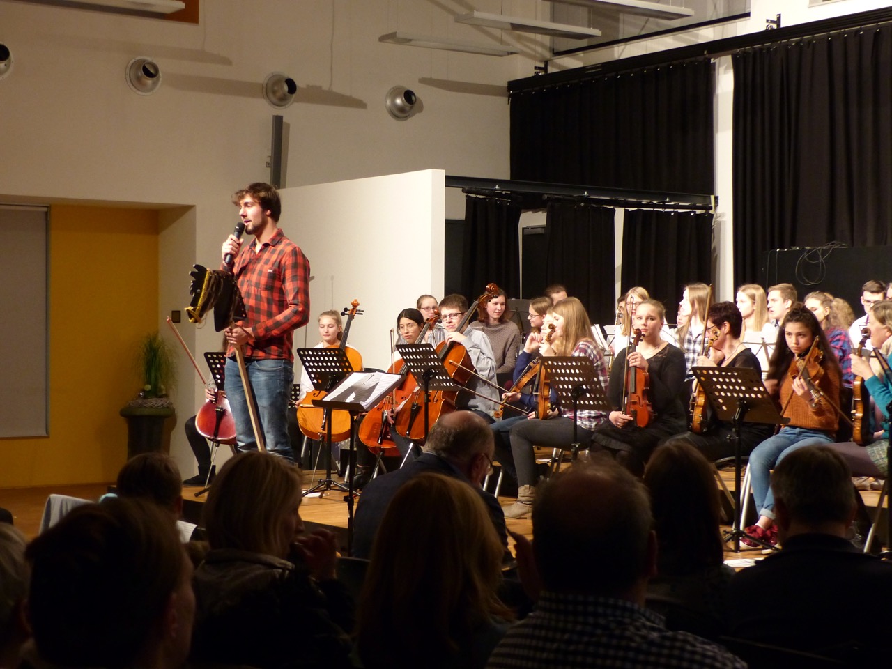 Die fast 100 aktiven Schülerinnen und Schüler der zahlreichen Musik-AGs konnten sich beim Weihnachtskonzert 2017 über eine bis auf den letzten Platz gefüllte Aula freuen. In den kurzweiligen 90 Minuten des Konzerts präsentierten die AGs VorOrchester, Stauffis, Junior-Band, KlezmerExperience, Pop-Chor, Schulband und Orchester ihre erarbeiteten Weihnachtsprogramme. Charmant durch den Abend führten erstmals zwei Schülerinnen und ein Schüler der Q2, wobei die Schüler der Light&Sound-AG dafür sorgten, dass alle Beteiligten immer gut zu sehen und zu hören waren. Das gemeinsames Singen aller Beteiligten mit den Besucherinnen und Besuchern zur Musik des Orchesters sorgte schließlich für einen wunderbaren Abschluss eines gelungenen Konzertabends.