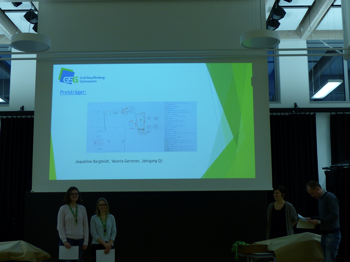 Den Abschluss bildete eine feierliche Preisverleihung, welche am 17. Januar 2019 alle Teilnehmer würdigte. Die Preise wurden vom Förderer- und Ehemaligenverein (FEV) am GSG gestiftet.