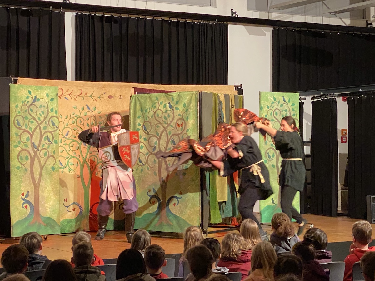 In diesem Jahr sahen die Jahrgänge 5 und 6 das Stück „The Green Knight“, das eine Geschichte vom Hofe des legendären King Arthur erzählt. Die Geschichte um Ritter, Drachen und Zauberei begeisterte das junge Publikum. Das Stück „Salt & Vinegar“ über die erste Liebe, aber auch die erste Eifersucht war da schon eher was für die 7.- und 8.-Klässler.