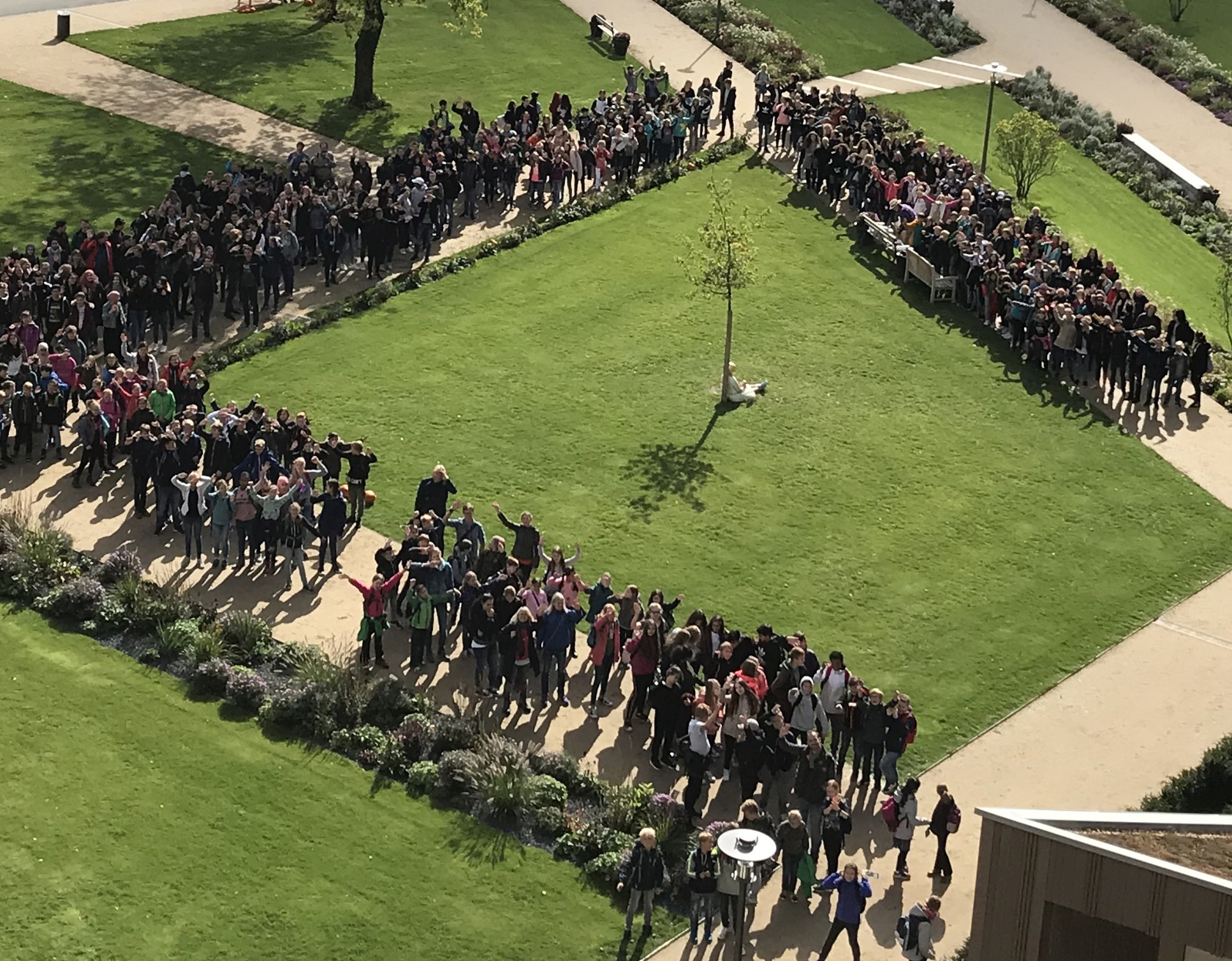 Nach diesen 15 Minuten mussten wir uns alle auf einer Wiese vor dem Baumwipfelpfad treffen, weil dort ein Schulfoto gemacht wurde. Nun hatten wir eine etwas längere Pause von ca. 45 Minuten. In dieser Zeit konnten wir in kleinen Gruppen die Landesgartenschau erkunden.