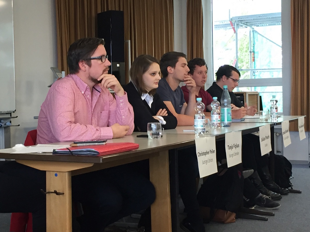 Am 24.9. ist Bundestagswahl und pünktlich 10 Tage vorher diskutierten die Schülerinnen und Schüler der Jahrgänge Q1 und Q2 am Graf-Stauffenberg-Gymnasium deshalb mit den VertreterInnen der regionalen Jugendorganisationen im Rahmen der RPJ Schultour (http://rpj-schultour.de/) und hinterfragten die Parteiprogramme kritisch.