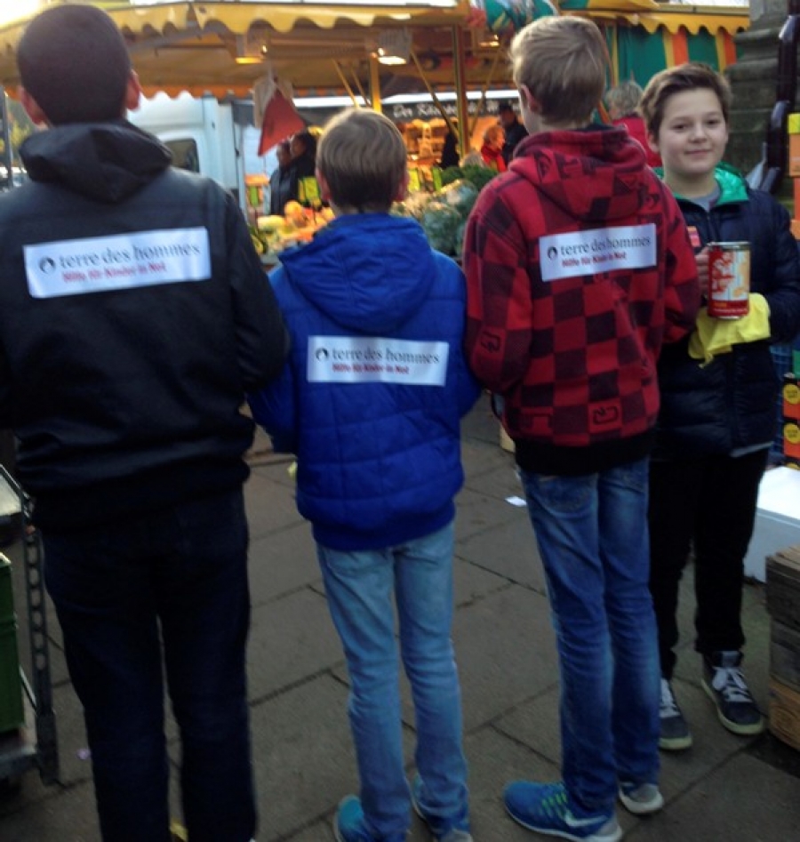 Der WuN Kurs des Jahrgangs 7 hat sich am Freitag, dem 21.11.2014 an einer Straßenkinderaktion von terre des hommes beteiligt. Auf dem Freitagsmarkt putzten die Schüler und Schülerinnen Schuhe, verkauften Taschentücher, Streichhölzer und Selbstgemachtes und sammelten Spenden für Kinder in Not.