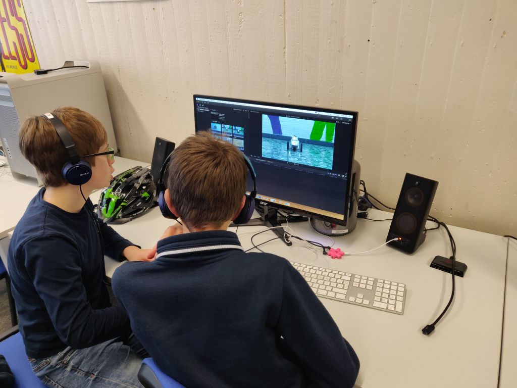 Am 14.02.19 war die Robotik-AG im Medienzentrum Osnabrück und hat dort unter professioneller Anleitung kleine Kurzfilme über die AG erstellt. Neben dem Schnitt und der Audiobearbeitung haben die Schülerinnen und Schüler gelernt wie der Greenscreen erfolgreich durch ein passendes Hintergrundbild ersetzt wird. Ein weiterer Termin wird noch folgen, an dem die Schülerinnen und Schüler die Filme fertigstellen werden. Am Tag der offenen Tür werden die Filme der Öffentlichkeit vorgestellt. Die Robotik-AG freut sich, Ihnen die Videos zu präsentieren.