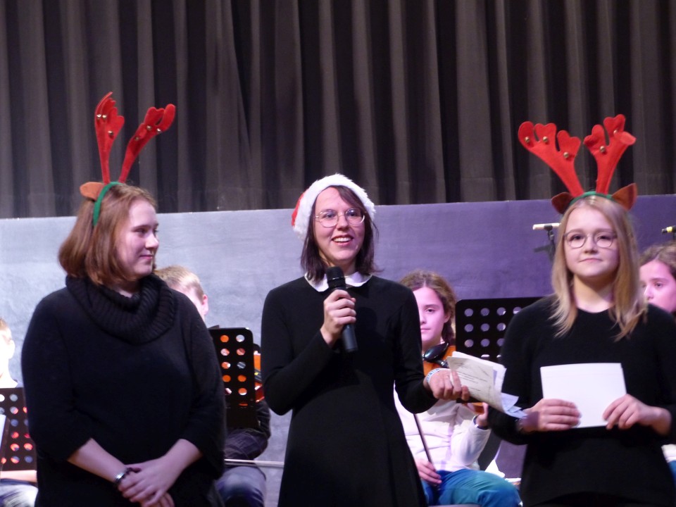 Durch den Abend führten charmant und souverän die Moderatorinnen Melanie Helmig, Sina Klink und Julia Rohlfing, während die Schüler*innen der Light&Sound-AG während des gesamten Konzerts für passende Lichtstimmungen und einen guten Ton sorgten, sodass das gemeinsame Singen aller Beteiligten mit den Besucherinnen und Besuchern zur Musik des Orchesters schließlich für einen wunderbaren Abschluss eines gelungenen Konzertabends sorgte.