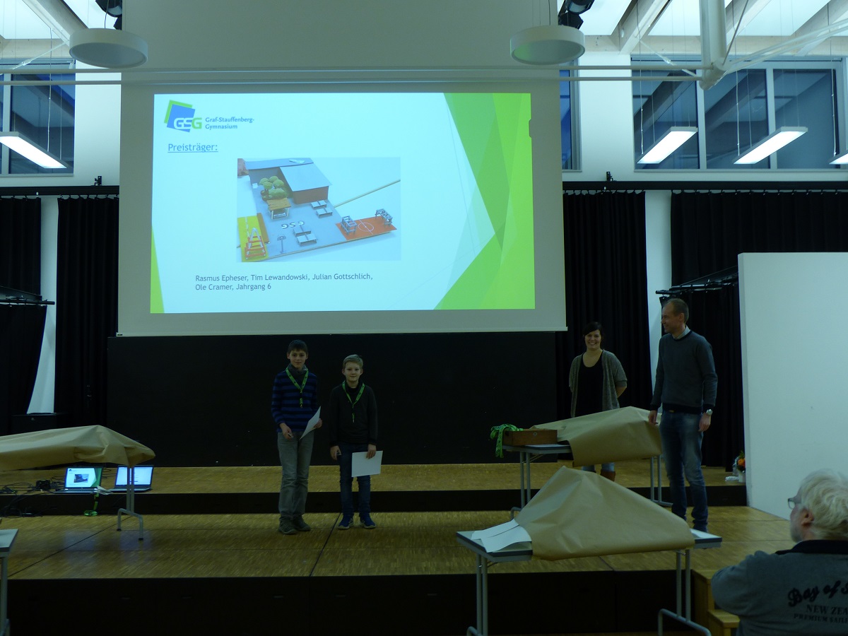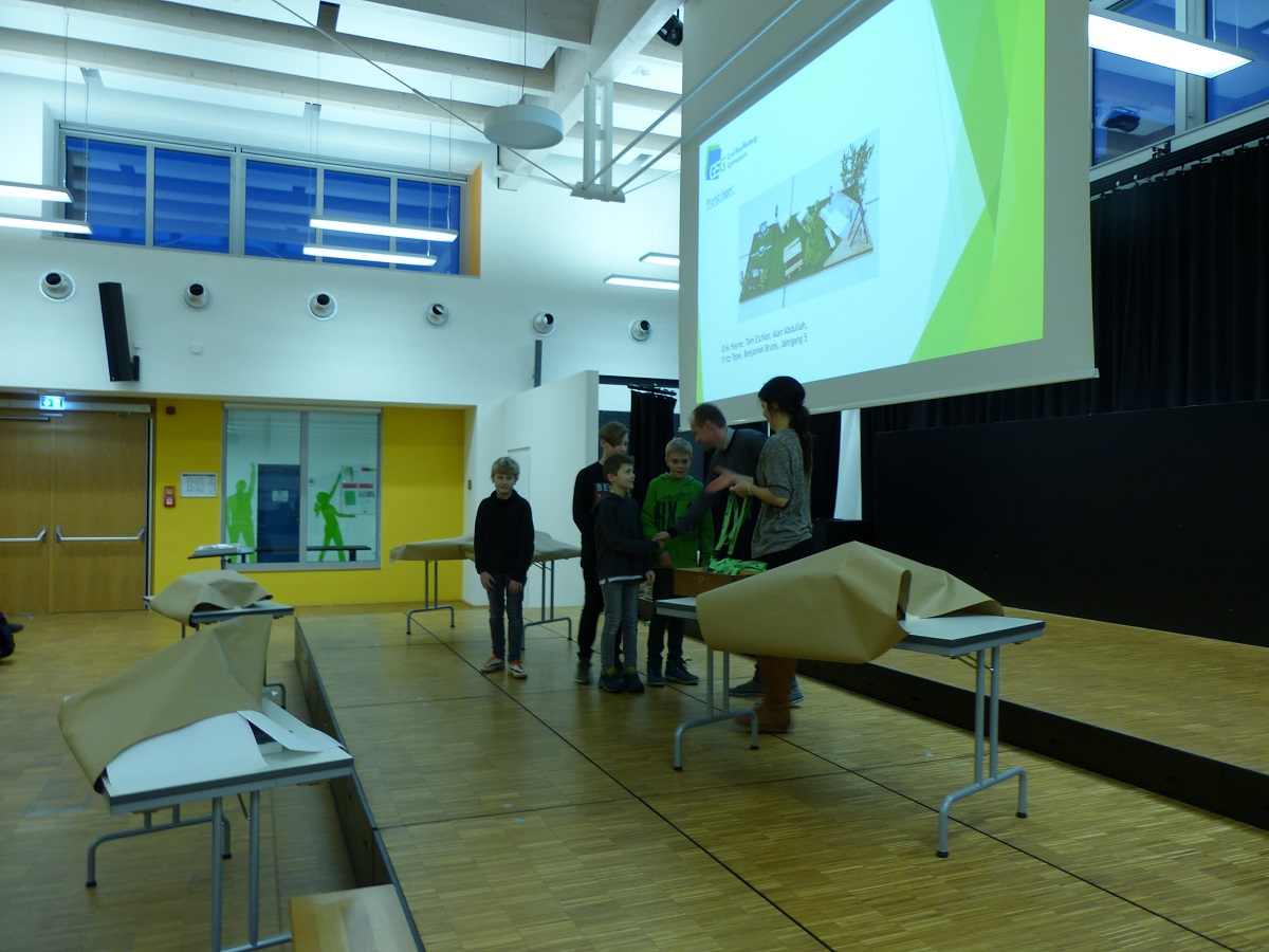 Den Abschluss bildete eine feierliche Preisverleihung, welche am 17. Januar 2019 alle Teilnehmer würdigte. Die Preise wurden vom Förderer- und Ehemaligenverein (FEV) am GSG gestiftet.
