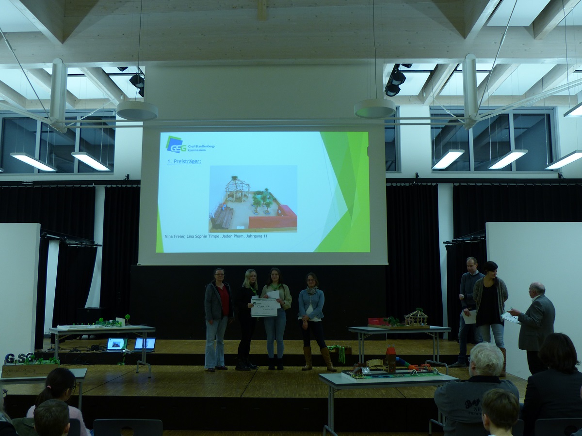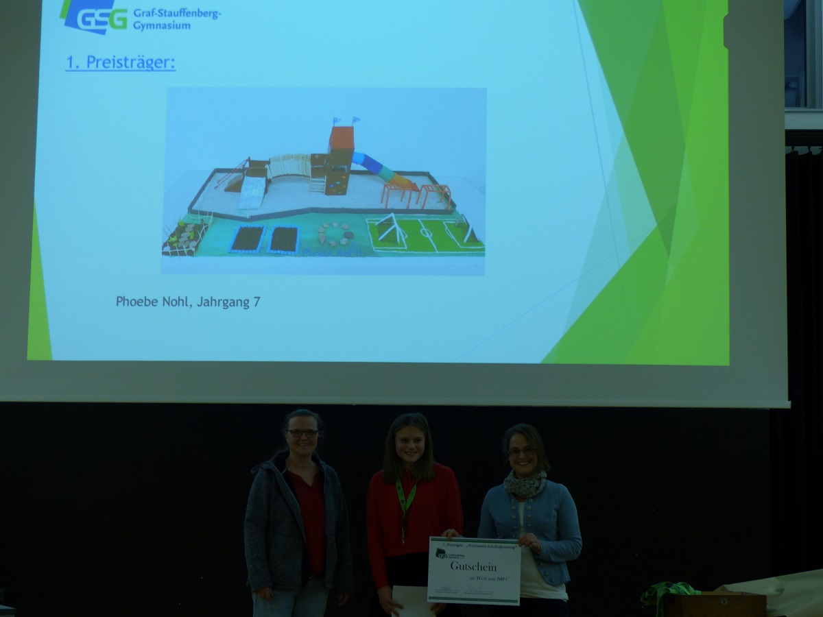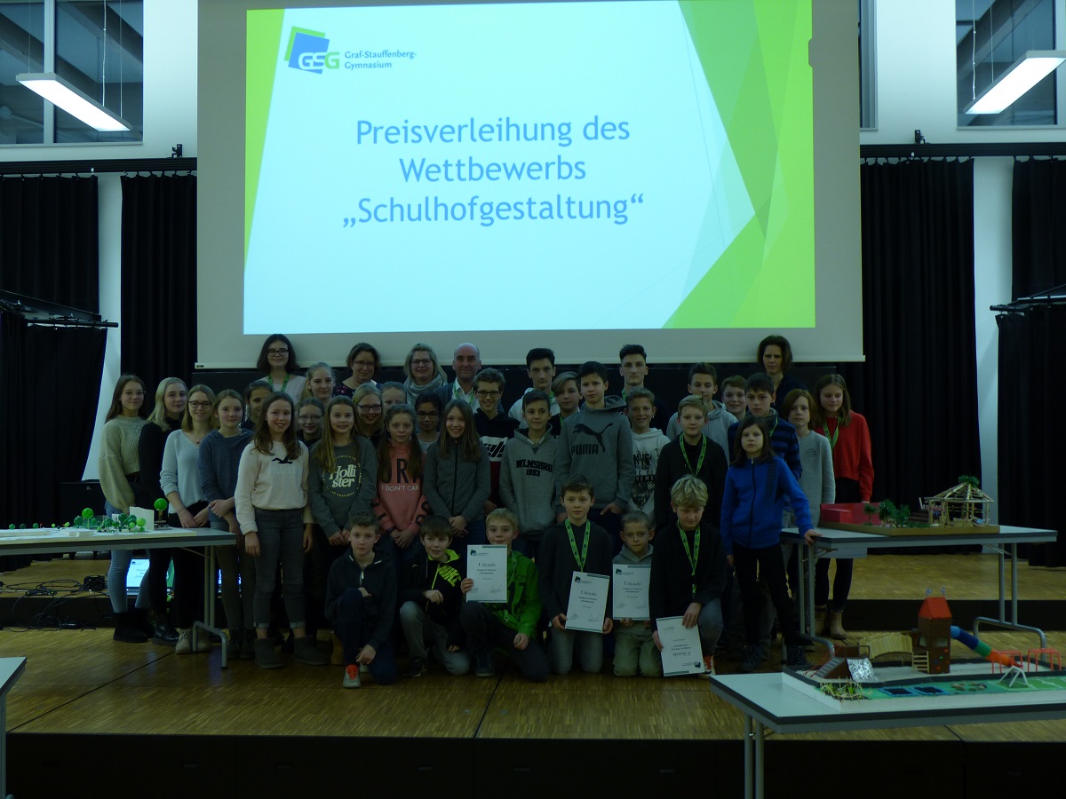 Wie kreativ die SchülerInnen des Graf-Stauffenberg-Gymnasiums sind, zeigte der Wettbewerb zur Neugestaltung unseres Schulhofes. Dieser entwickelte sich aus den Planungen zur neuen Sporthalle.