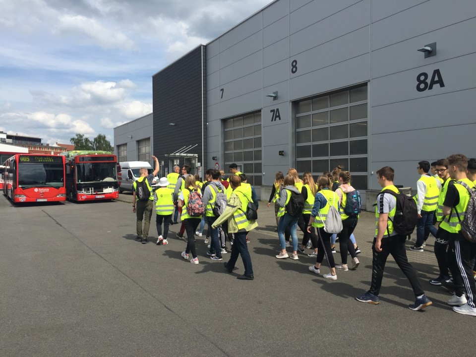Zunächst haben wir einen 90-minütigen Überblick über das Gelände erhalten. So wurde uns Wissenswertes über das Liniennetz berichtet und aufgezeigt, dass die Stadt u.a. den Plan verfolgt alle Busse in E-Busse umzuwandeln. Dieses soll speziell den Co2-Austoß in den nächsten Jahren verringern.