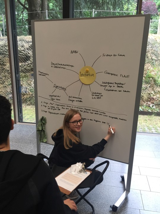 Am zweiten Tag unserer Projekttage haben wir die Ausstellung „MenschenWelt“ der Deutschen Bundesstiftung Umwelt (DBU) in Osnabrück besucht. In einem abwechslungsreichen Programm wurde uns dort nähergebracht, wie unser Handeln und unser Konsum mit dem Ökosystem und dem Klimawandel zusammenhängen. Nachdem wir uns über unsere Ansichten bezüglich des Klimawandels und unserem Ökosystem ausgetauscht haben, konnten wir uns die Ausstellung ansehen. Dabei haben wir viele interessante Dinge erfahren. Beispielsweise, dass Medikamente unser Grundwasser vergiften und wie das Meer unter dem Klimawandel leidet. Anschließend haben wir uns in Kleingruppen Gedanken darüber gemacht, wie Wissenschaft, Initiativen, Politik, Unternehmen und Bürgerinnen und Bürger dafür sorgen können, verheerende Folgen des Klimawandels zu verhindern. Wir stellten Pro- und Kontra Positionen heraus und führten eine Nachhaltigkeitsdebatte über umweltfreundliche Mobilitätsmöglichkeiten in Osnabrück an. In dieser brachten wir ebenfalls unser Wissen vom vorherigen Tag mit ein.