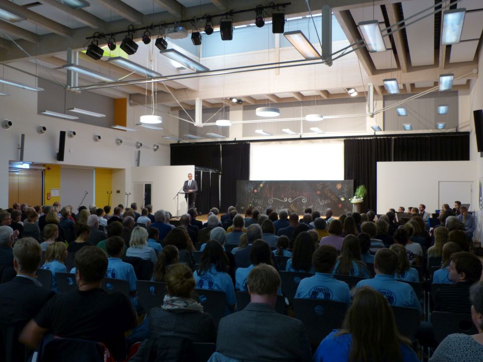 Der warme Regen lobender Erinnerungen und bester Wünsche für die Zukunft wurde dann unterbrochen durch eine weitere Darbietung aus dem Theaterstück, welche die Verabschiedung durch die Schulgemeinschaft einleitete. Diese drückte der Veranstaltung einen ganz eigenen Stempel auf.