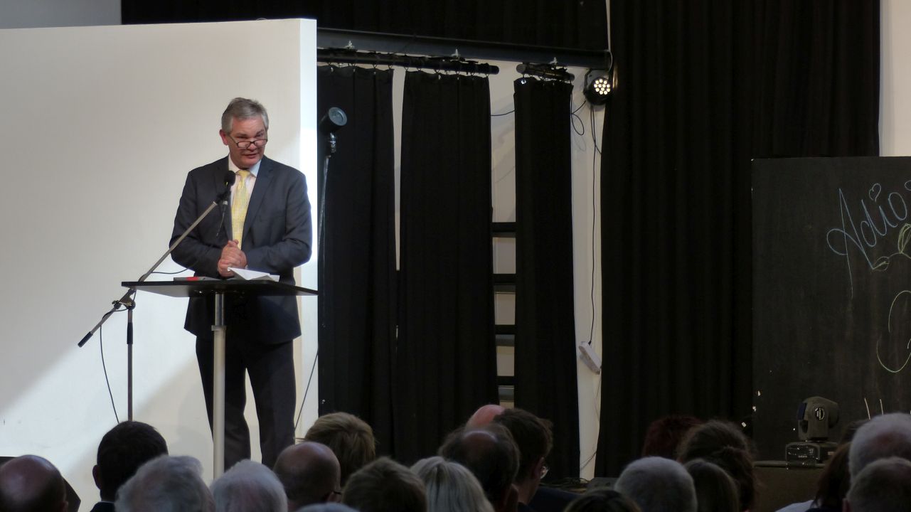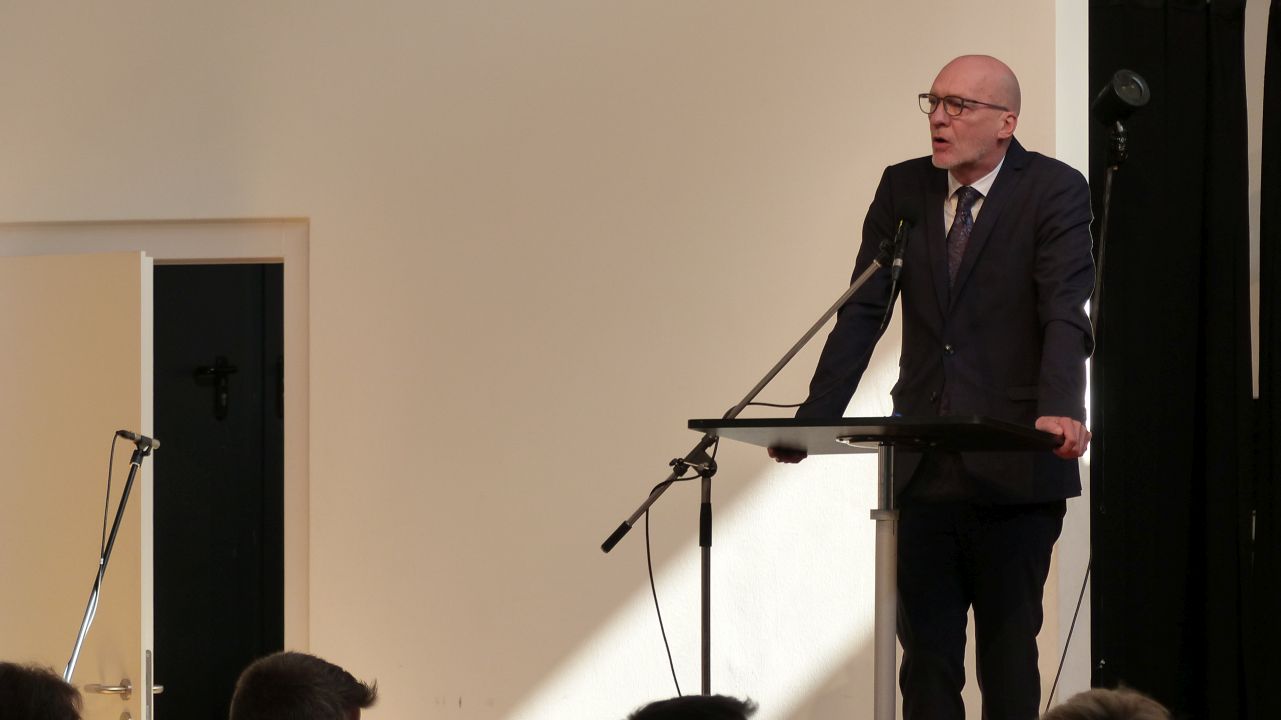 Uwe Bolz, pensonierter Koordinator der Schule, führte in abwechslungsreicher und kurzweiliger Weise durch das anschließende Programm.