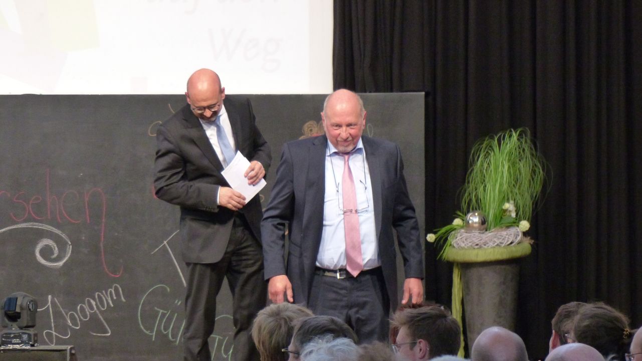 Tenor vieler ehrender Worte war es, dass sich die Arbeit Josef Krotzeks durch eine hohe Offenheit und Dialogbereitschaft auszeichnete. Dies merkten auch Nicolas Albrecht und Jonas Michalowski von der Schülervertetung ebenso an wie der Elternvertreter, Herr Prof. Dr. Markus Große Ophoff. Der Schulleiter habe mit allen Schülern unterschiedslos auf Augenhöhe gesprochen und ein offenes Ohr für alle Nöte und Anfragen gehabt. Er habe viele Prozesse angestoßen und auch mal laufen lassen anstatt vorschnell zu dirigieren, was Herr Große Ophoff besonders schätzte.