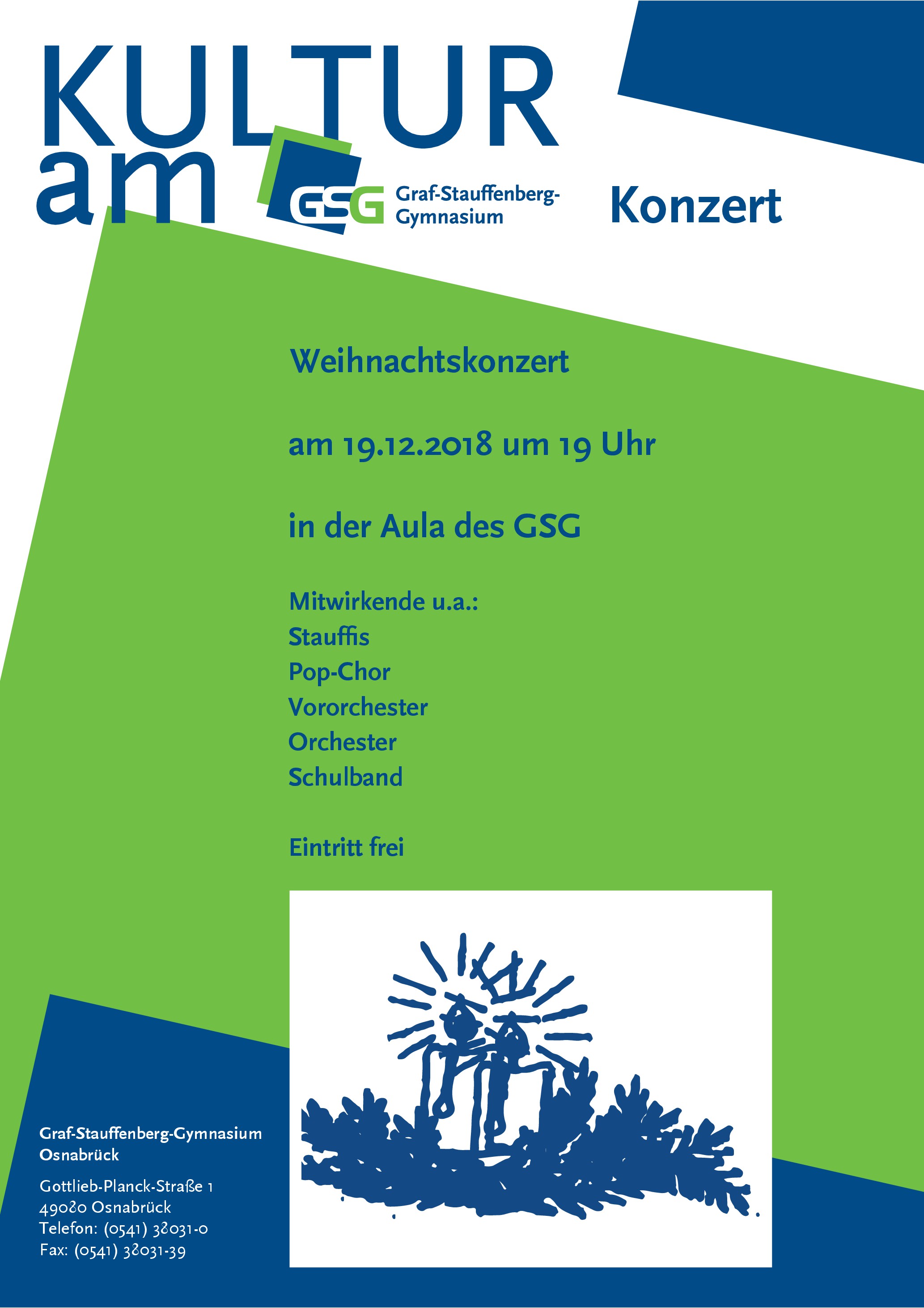 Weihnachtskonzert am 19.12.2018 um 19 Uhr in der Aula des GSG.