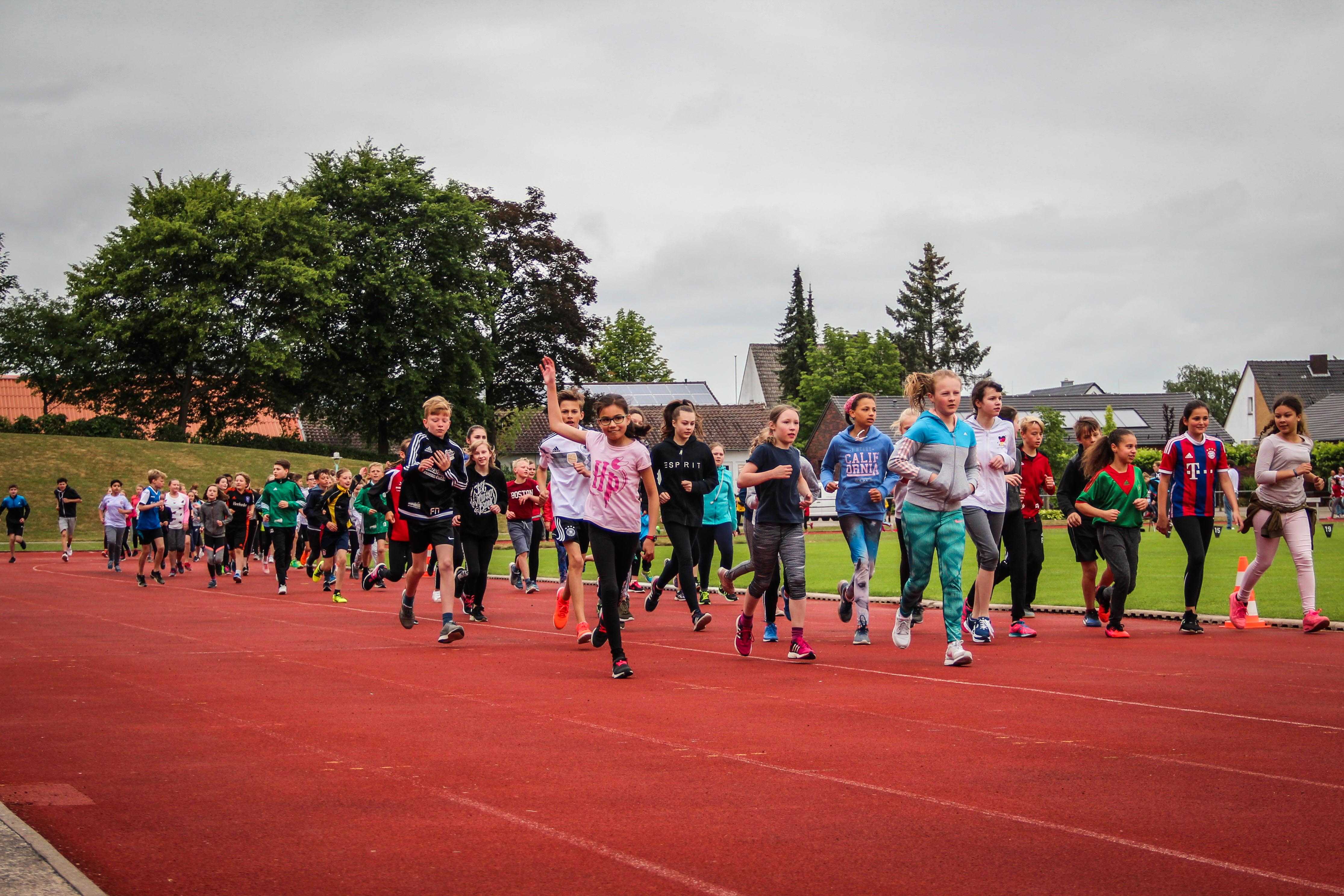 Am vergangenen Mittwoch war der Lärmpegel an der Illoshöhe phasenweise deutlich erhöht. Insbesondere als die über 300 Schüler*innen der Klasse 5 bis 7 bei den Jahrgangsstaffel ihre Klassen anfeuerten. Wieder einmal musste sich dabei die Lehrer*innentruppe den 7. Klassen geschlagen geben. Aber für das nächste Jahr - so wurde gemunkelt - soll ein Geheimtraining angesetzt werden.