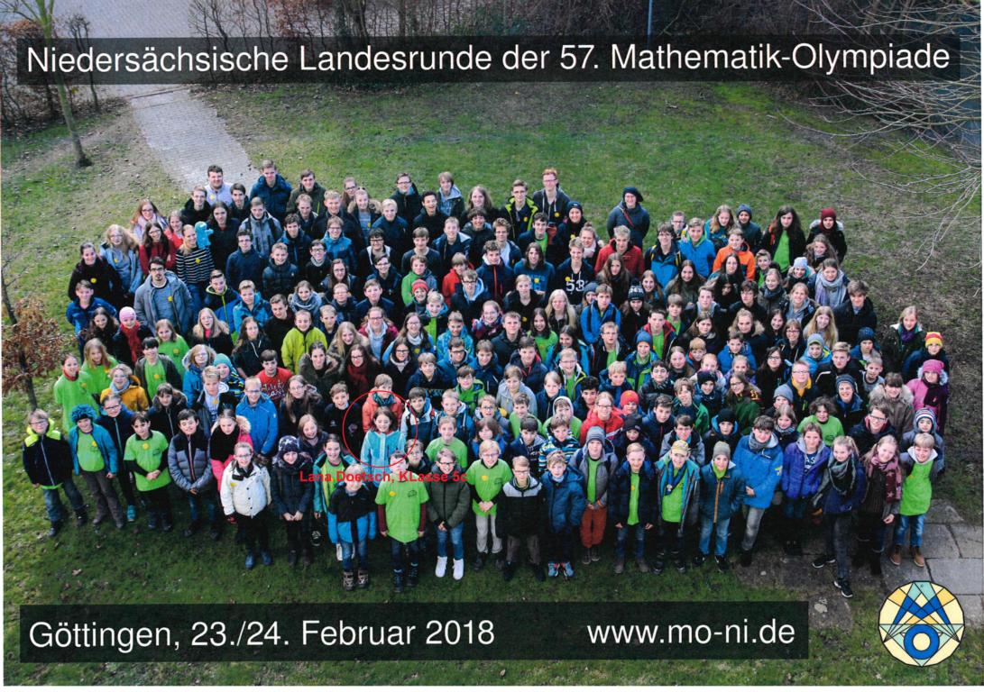 Lana Doetsch, Klasse 5c, erreicht bei der Landesrunde der Mathematik Olympiade am 24.02.2018 in Göttingen einen 2. Preis. Herzlichen Glückwunsch!