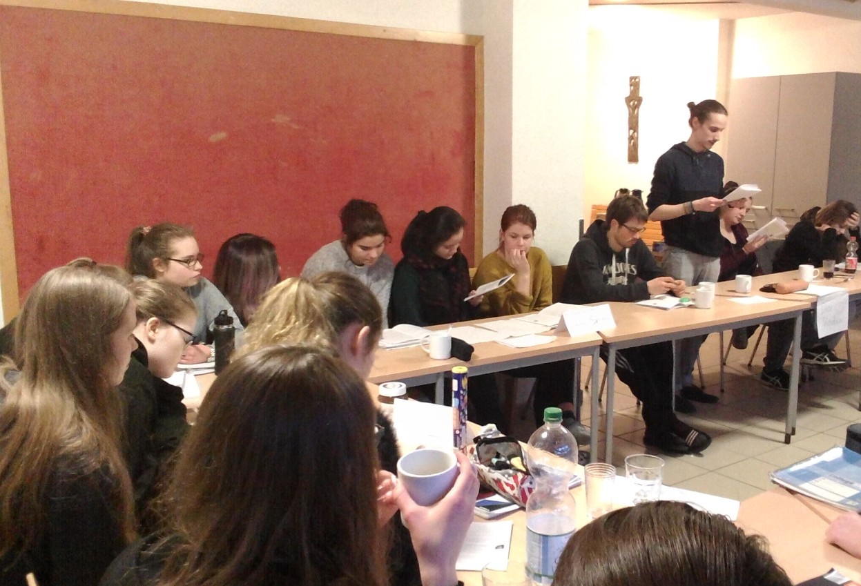 Während des kalten Winterwochenendes vom 09.-11.02.2018 beschäftigten sich über 20 Schülerinnen und Schüler der Jahrgänge 11 und 12 in Bad Essen mit Experimenten und deren Bedeutung für die Philosophie. Sowohl die klassischen Gedankenexperimente zu Identität (Wer ist eigentlich ICH, wenn ein Gehirn-Backup von mir in einen anderen Körper verpflanzt wird?), Wahrnehmung der Wirklichkeit (Wie erlebt man eigentlich das Auftauchen einer dreidimensionalen Kugel in einer zweidimensionalen Welt?) oder Ethik als auch Realexperimente aus der Physik (Delayed-Choice: Beeinflusst die Zukunft die Vergangenheit?) oder Sozialpsychologie wurden durchdacht, einander vorgestellt und auf ihren philosophischen Gehalt hin ausgewertet. Die vielfach überraschenden Ergebnisse führten zu so mancher Diskussion, die dann auch nach Ende des „offiziellen“ Programms noch engagiert bis in die frühen Morgenstunden fortgeführt wurde – Philosophieren ohne Notendruck und enges Zeitkorsett, wie man es sich wünscht.