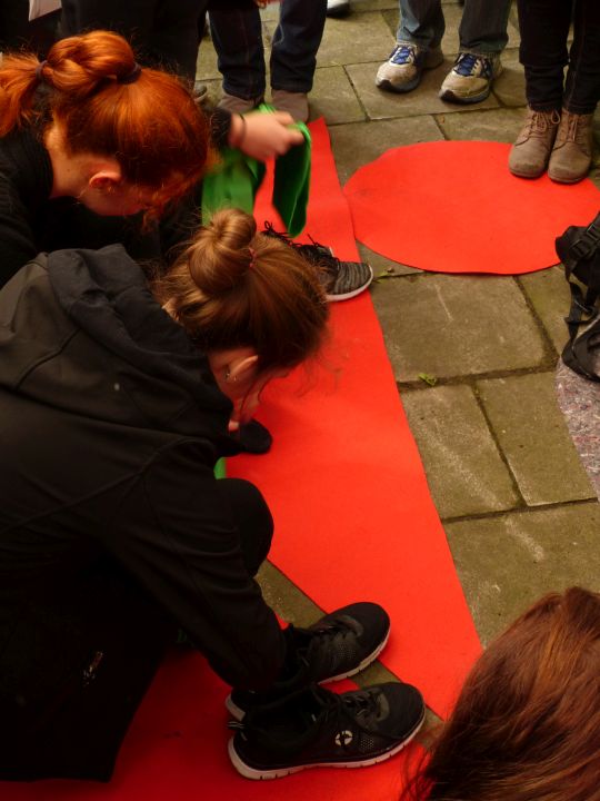 Die Schülerinnen des Seminarfaches Kunst eröffneten am Samstag, 5.9.2015 mit einer „etwas anderen“ Eröffnungsrede die Ausstellung „Pede collato / collato pede – Provokation oder Potential?!“ im historischen Wehrturm „Bürgergehorsam“. Die Kunstwerke sind innerhalb des letzten Jahres im Rahmen des Vermittlungsangebotes „Schüler führen Schüler“ der Kunsthalle Osnabrück sowie des Seminarfaches entstanden.