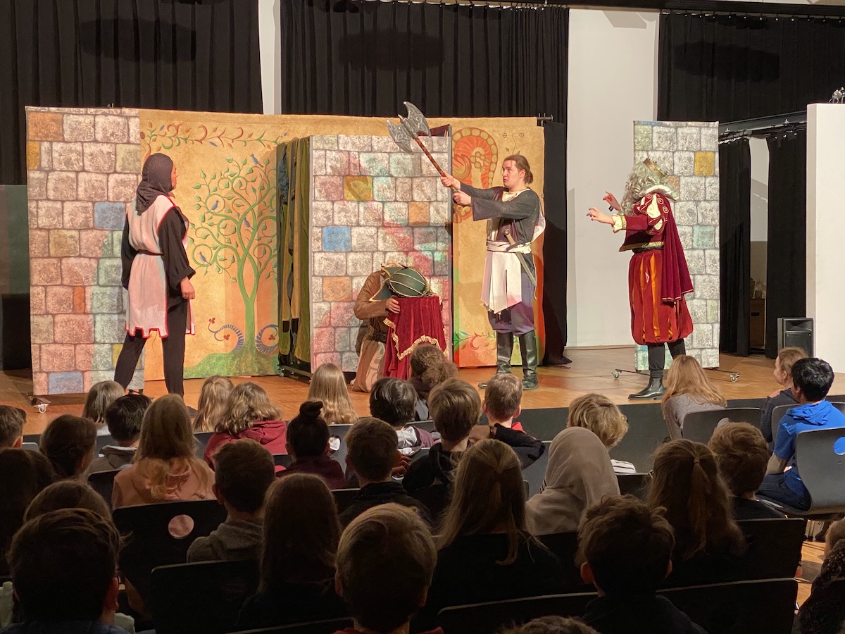 In diesem Jahr sahen die Jahrgänge 5 und 6 das Stück „The Green Knight“, das eine Geschichte vom Hofe des legendären King Arthur erzählt. Die Geschichte um Ritter, Drachen und Zauberei begeisterte das junge Publikum. Das Stück „Salt & Vinegar“ über die erste Liebe, aber auch die erste Eifersucht war da schon eher was für die 7.- und 8.-Klässler.