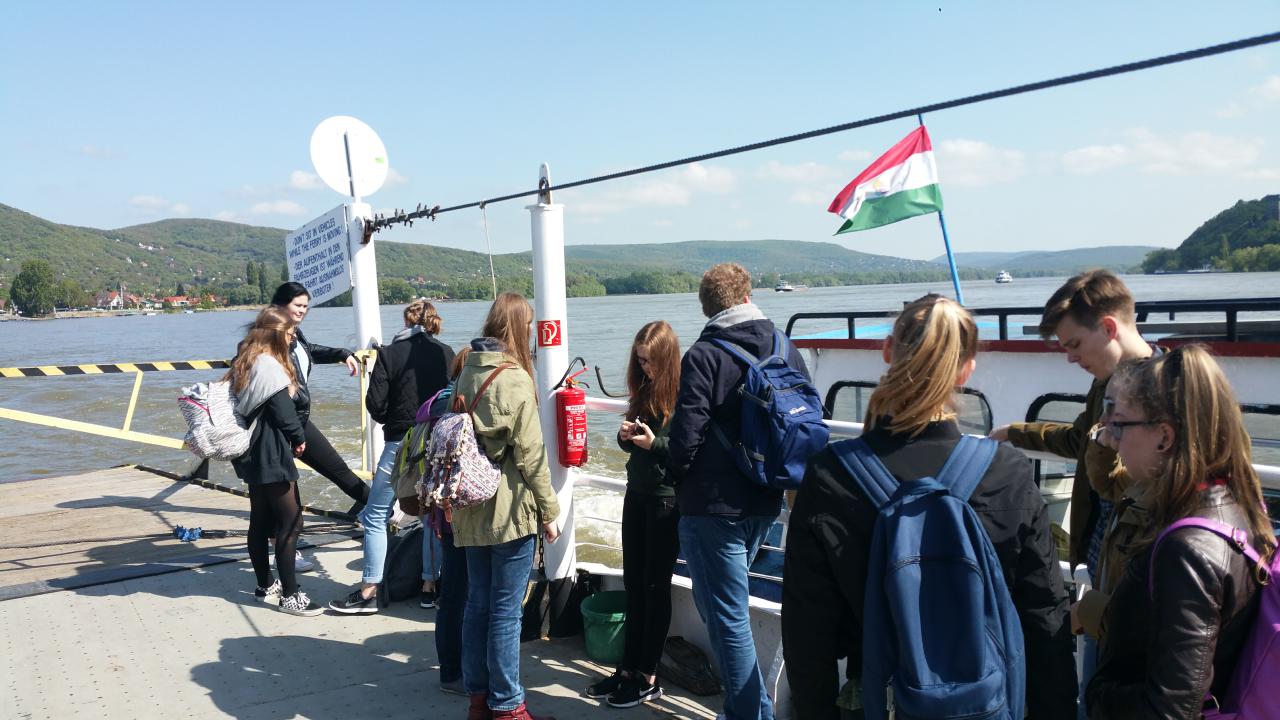 Am ersten Schultag nach den Osterferien haben sich 14 Schülerinnen und Schüler des 10. Jahrgangs auf den Weg nach Budapest gemacht. Bereits um fünf Uhr haben wir uns an der Schule getroffen und sind zusammen mit dem Bus zum Flughafen nach Dortmund gefahren. Der Flug verlief sehr ruhig und gegen 10.20 Uhr kamen wir in Budapest an. Am Flughafen wurden wir von unseren ungarischen Austauschschülern/-innen bereits erwarten. Aufgeregt haben wir dann unseren jeweiligen Partner das erste Mal gesehen, nachdem wir schon seit einiger Zeit Kontakt hatten. Mit einem Bus sind wir dann zur Schule gefahren und auf dem Weg dahin wurden die ersten Konversationen teilweise auf Deutsch und Englisch geführt, was vom unterschiedlichen Leistungsstand und den Erfahrungen der Partner abhing. In der Schule angekommen haben wir erst einmal wie jeden Mittag in der Schule gegessen und haben danach die U-Bahn in Richtung Gellertberg genommen, um dort die Felsenkapelle zu besuchen. Nach dem Rundgang haben wir uns auf den Weg nach ganz oben gemacht, um einen ersten Ausblick auf die Stadt zu haben.