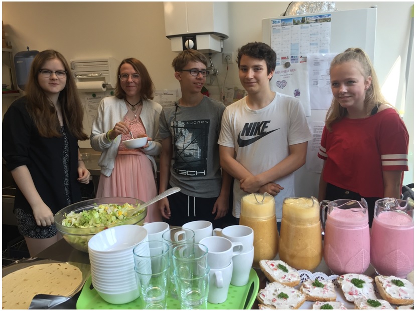 Ende Mai hatten wir wieder die Freude Café Knusper von der Montessori-Schule Osnabrück zu treffen. Wir waren bereits im Januar 2018 zum Frühstück bei ihnen eingeladen, wo wir herzlich aufgenommen wurden. Sie haben uns die Herstellung ihres Müslis vorgestellt und wir bekamen einen guten Einblick in deren Alltagsstruktur. Die Gastfreundlichkeit des Cafés Knusper wollten wir natürlich auch zurückgeben und freuten uns sehr auf den Rückbesuch am 31.Mai 2018.