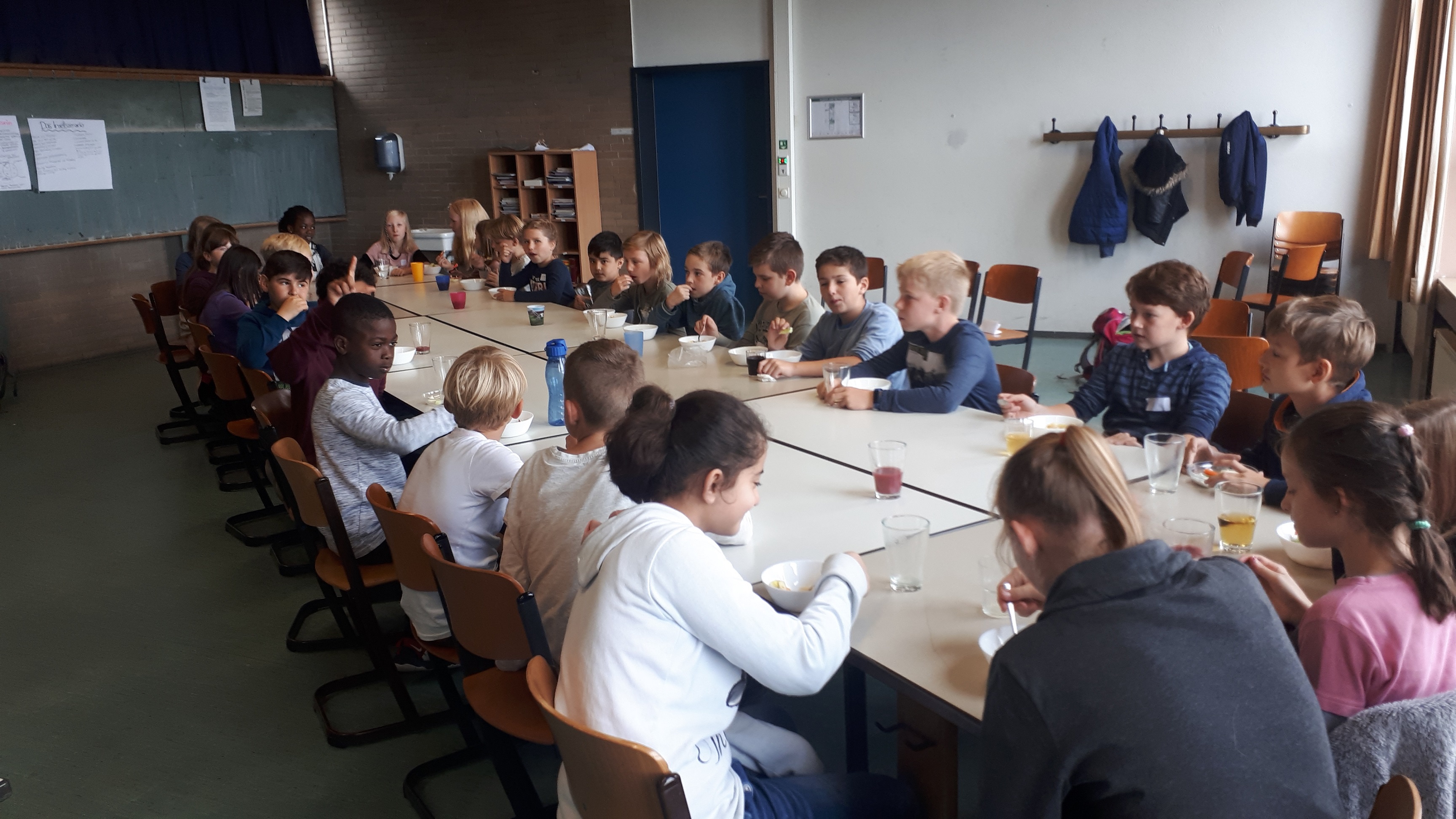 Ein gesundes Frühstück ist wichtig für einen guten Start in den Schulalltag. Mit dieser Thematik haben sich auch in diesem Jahr wieder die Klassen des fünften Jahrgangs im Rahmen einer kleinen Schulung von der Schülerfirma Fruchtoase auseinandergesetzt. Nach einer kurzen theoretischen Einführung haben die Schülerinnen und Schüler unter Betreuung einiger MitarbeiterInnen der Fruchtoase selbst einen bunten Obstsalat sowie leckere Gemüsesticks hergestellt und anschließend gemeinsam gefrühstückt.